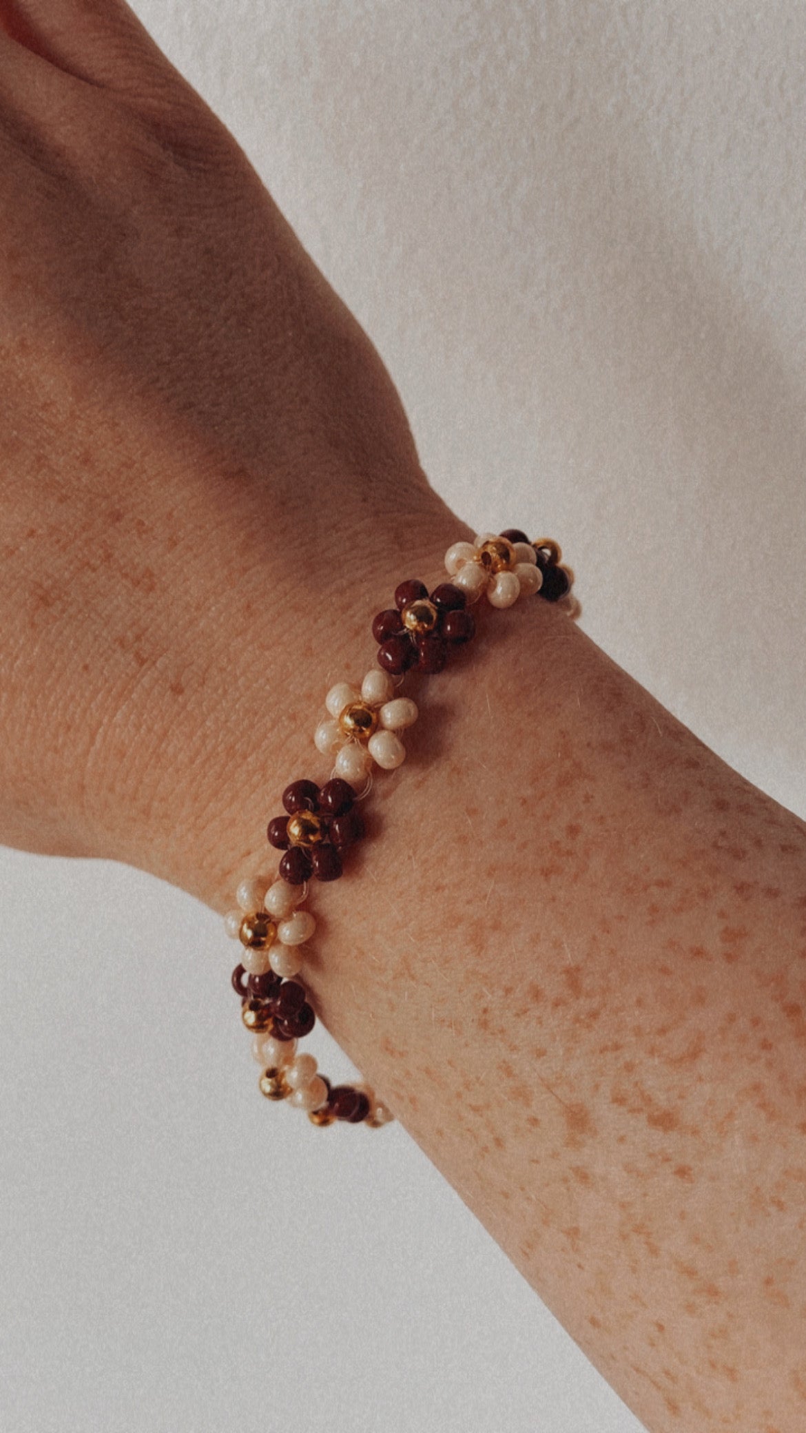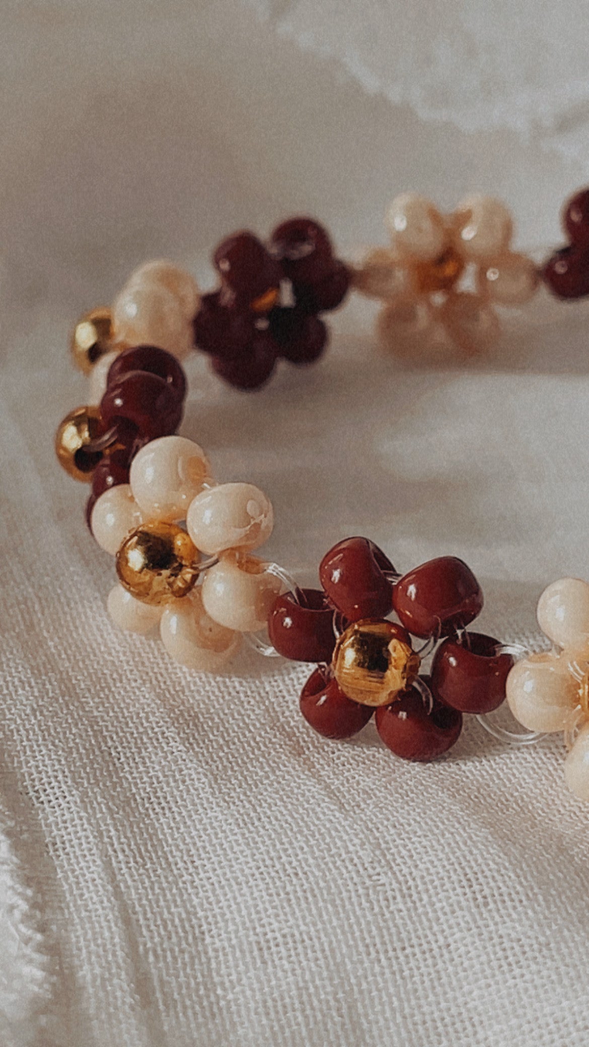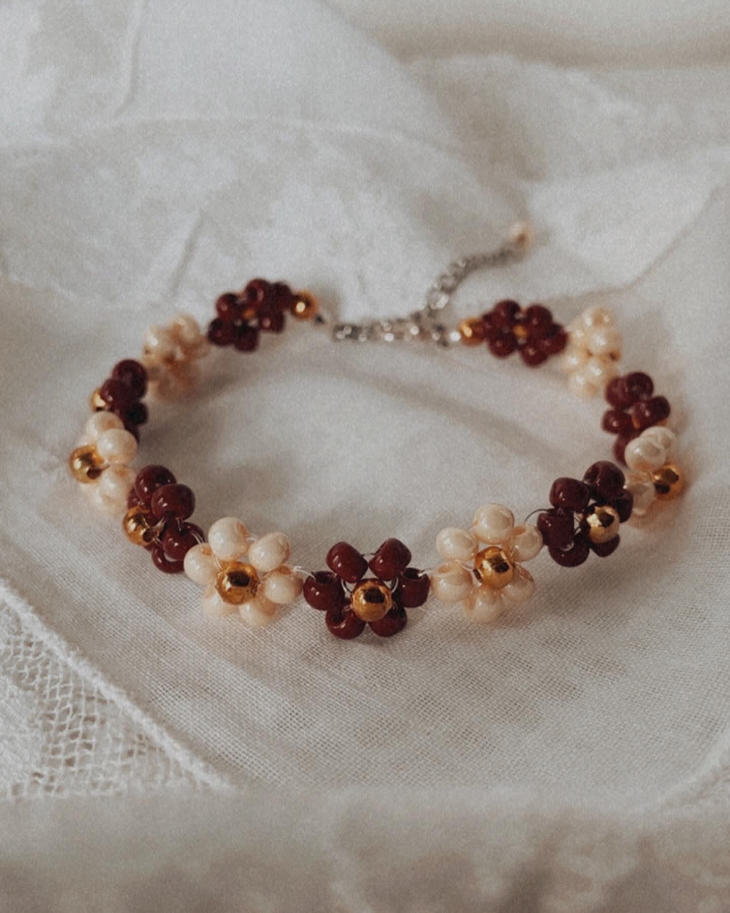 Handmade bracelet with high quality glass & metal beads in autumn colors.