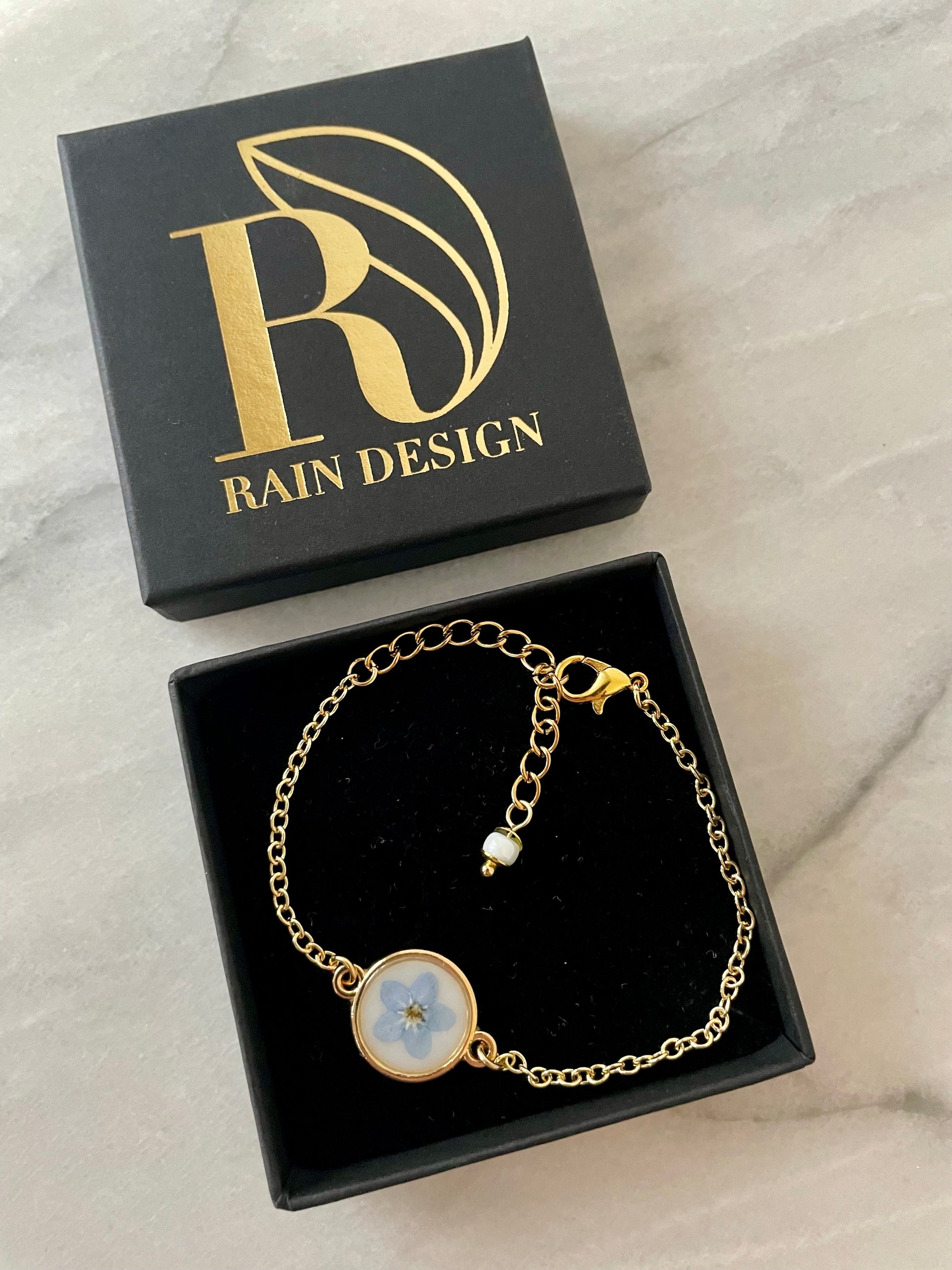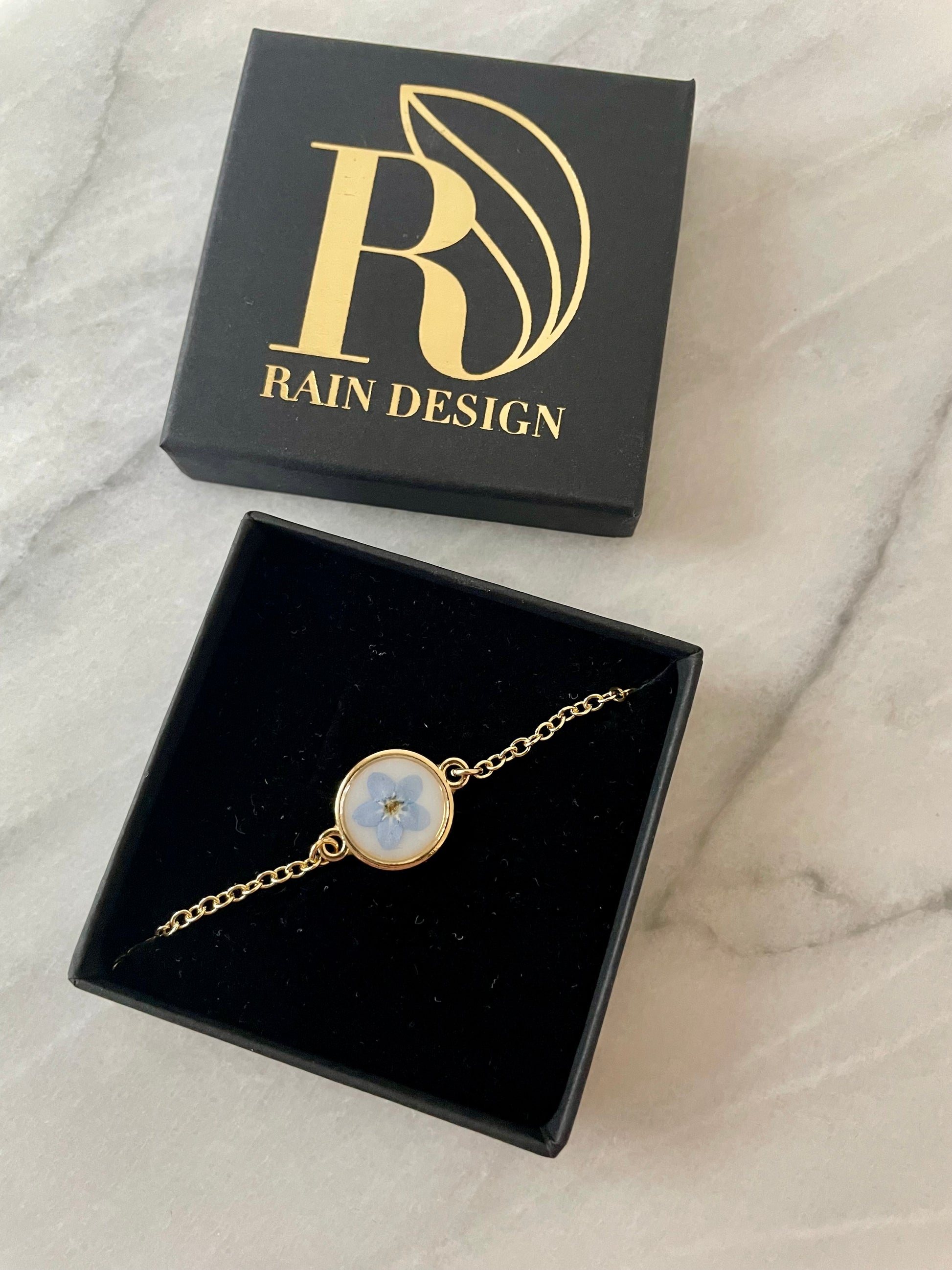 Forget me not flower picked from my garden, pressed and forever eternalised in a beautiful resin bracelet.