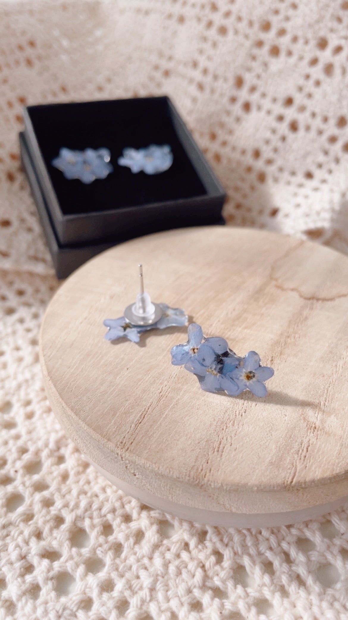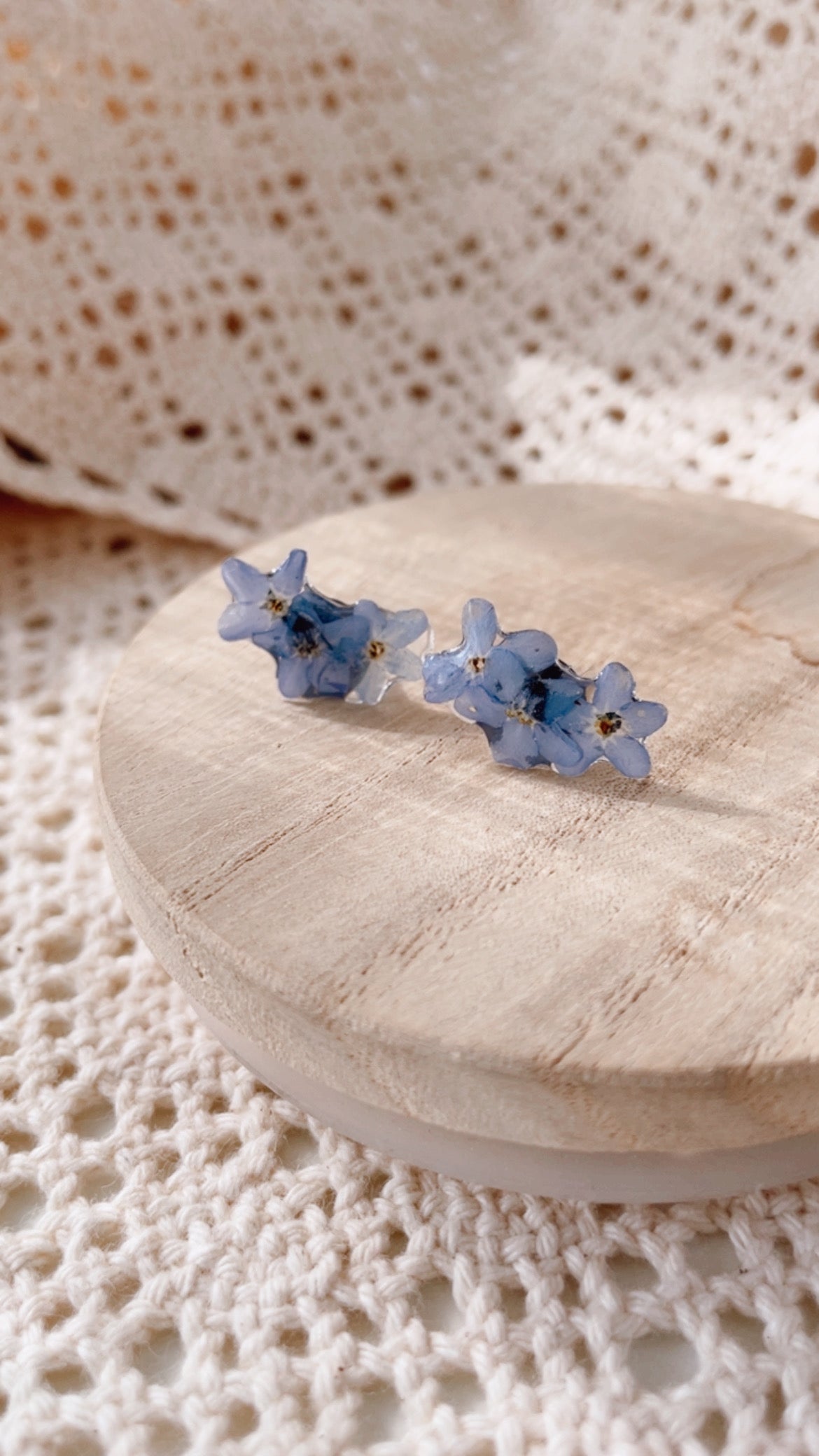 Beautiful and unique stud earrings with real flowers picked from my garden!