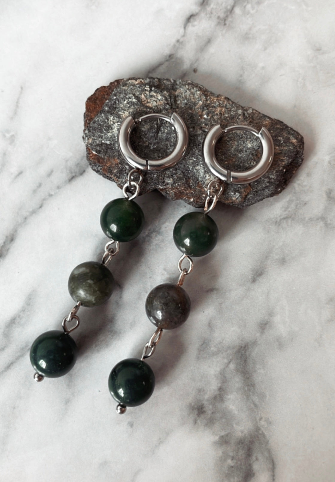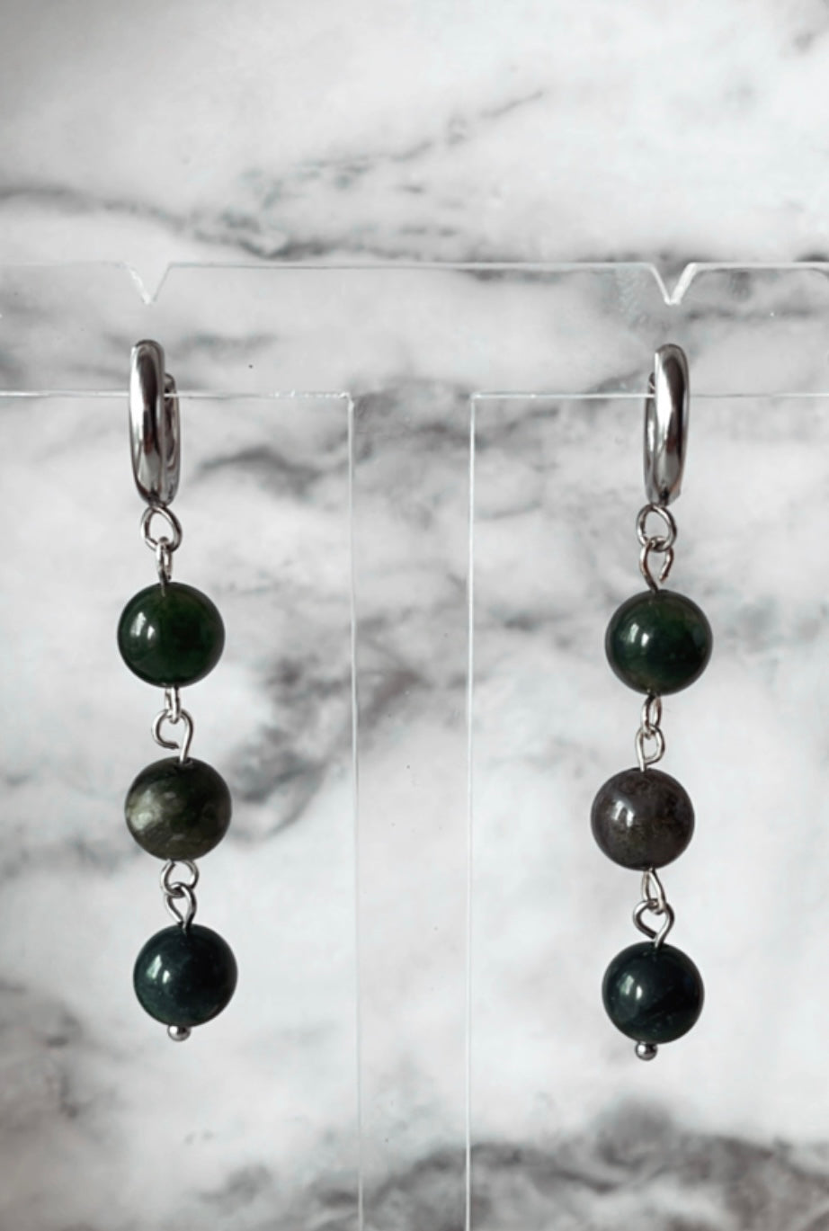 Trio örhängen med gröna mossagater